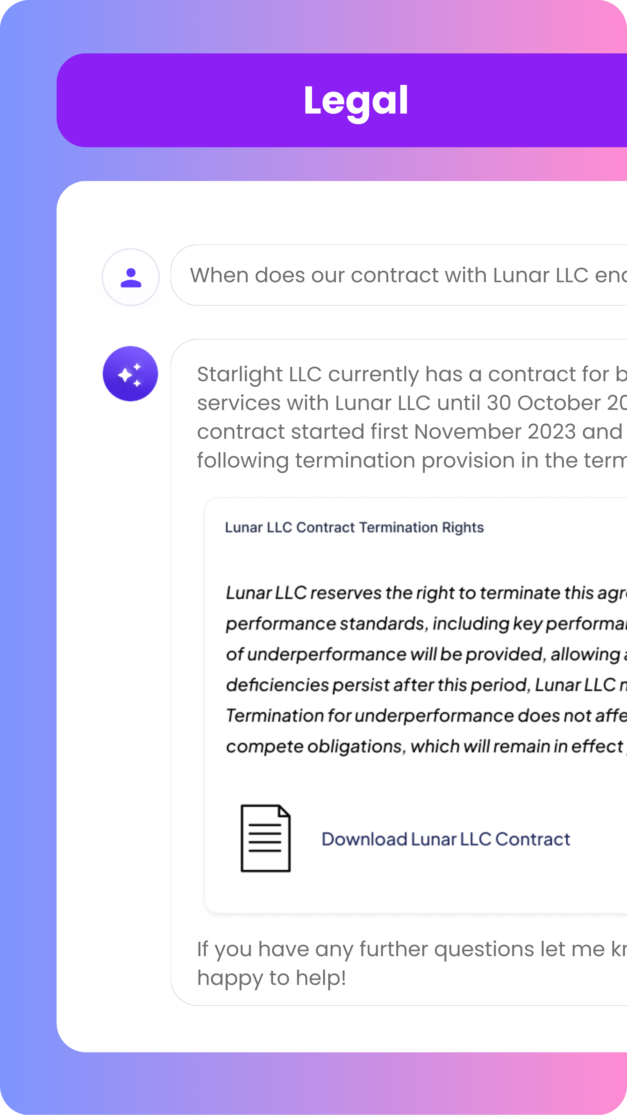 Prompt templates address common finance, legal and HR queries to make it easy to access the information you need.